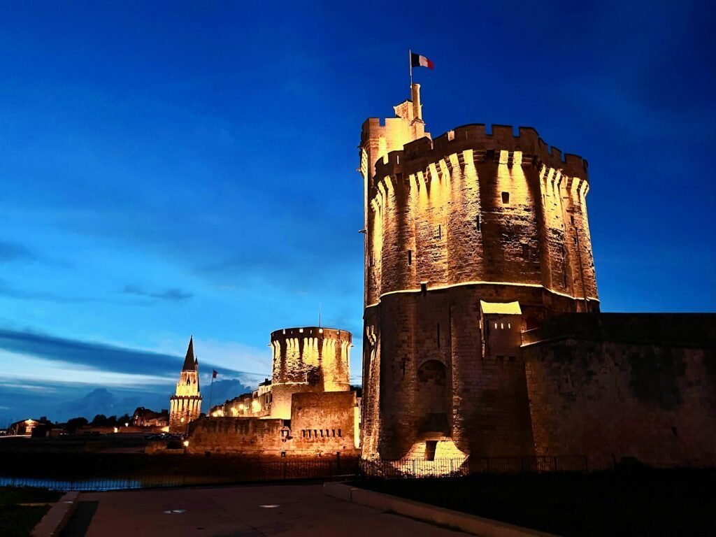 The Tour de la Chaîne and the Tour Saint-Nicolas, the city’s medieval sentinels, shone golden against the dark sky.