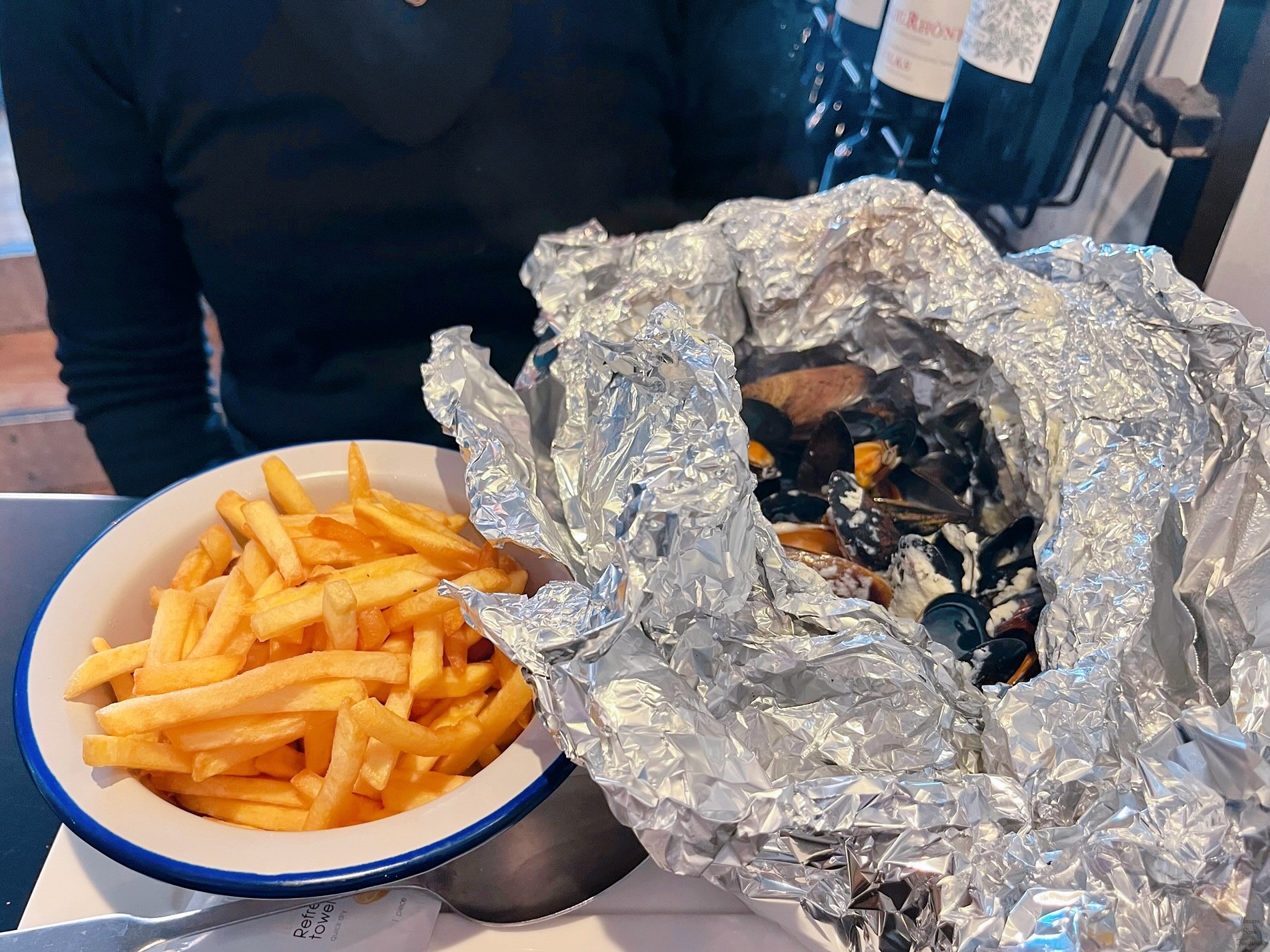 For lunch, we stopped at a nearby café for moules-frites, mussels with fries. I’d always associated it with Belgium, but apparently, it’s just as popular here in France. The mussels were tender, bathed in a fragrant white-wine sauce with herbs — simple, comforting, and delicious.