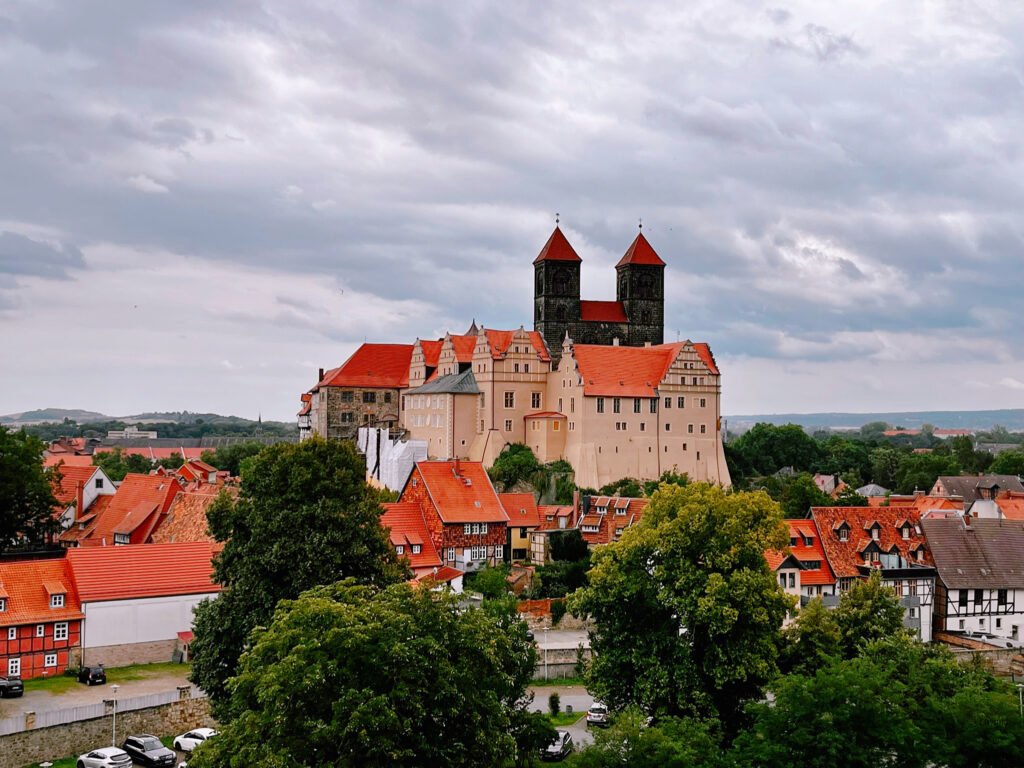After visiting Wittenberg, we took a three-hour train ride from Berlin to Quedlinburg. When we arrived, we noticed a charming station sign “Quedlinburg.” As we were taking family photos in front of it, a friendly station staff came over with a smile and offered to take a picture of all of us together. It felt like a warm welcome to the town, and such a lovely way to start our trip. Her smile is something I will never forget.🥰It made the start of our trip truly special.😊