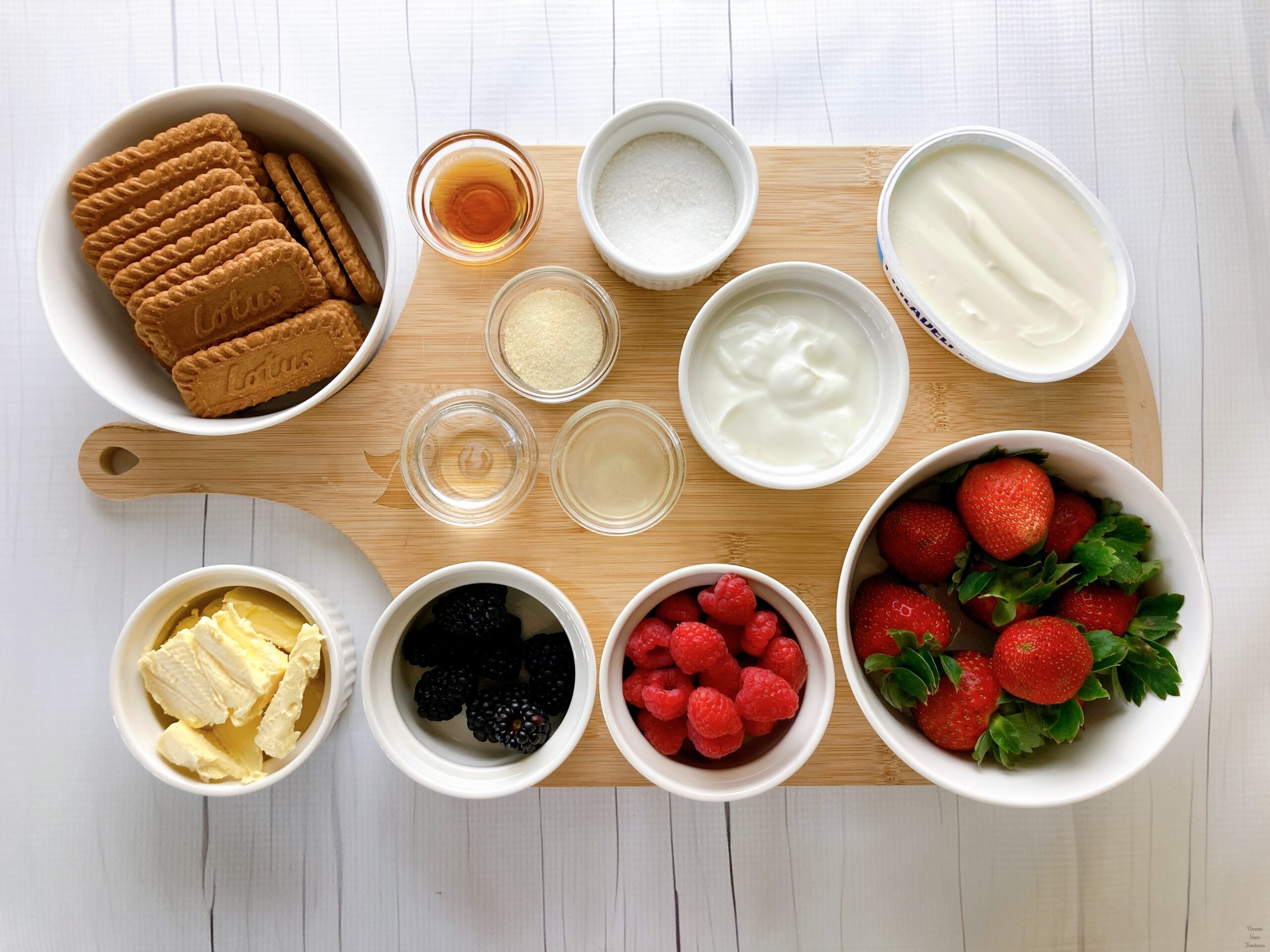4/ Mix the crushed biscuits with the melted butter in a bowl.